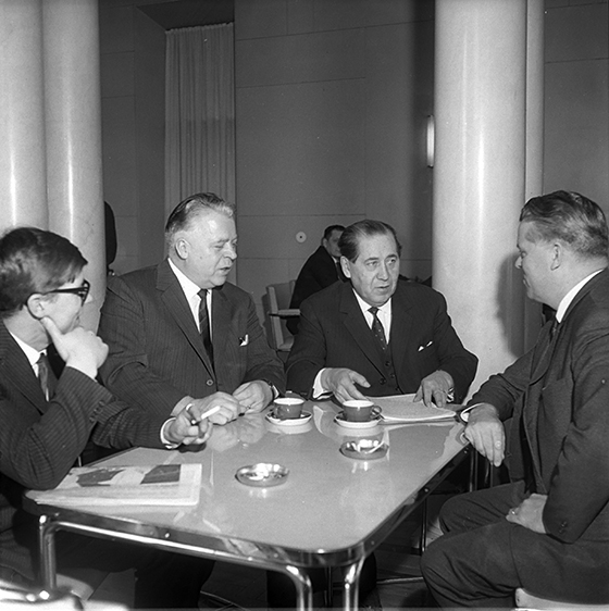 Kansanedustajia eduskunnan kahvilassa 1960-luvulla. Pöydän päässä Rafael Paasio.