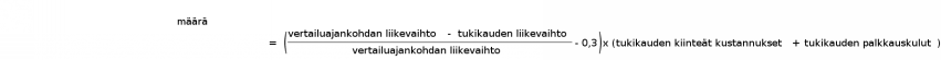 Kustannustuen määrä ennen 3 momentissa tehtäviä vähennyksiä lasketaan seuraavalla kaavalla, jossa liikevaihto tarkoittaa kyseisen ajankohdan keskimääräistä kuukausikohtaista liikevaihtoa: