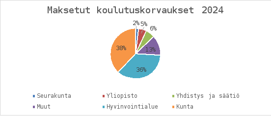 Tarkasteltaessa koulutuskorvauksen saaneita työnantajia vuosina 2023 ja 2024 huomataan, että korvausta hyödyntävät erityisesti julkisen sektorin toimijat, erityisesti hyvinvointialueet ja kunnat. Vuonna 2023 yli 70 prosenttia koulutuskorvauksen saajista oli kuntia ja hyvinvointialueita. Viisi eniten koulutuskorvausta saanutta työnantajaa saivat kukin korvausta yli 300 000 euroa.