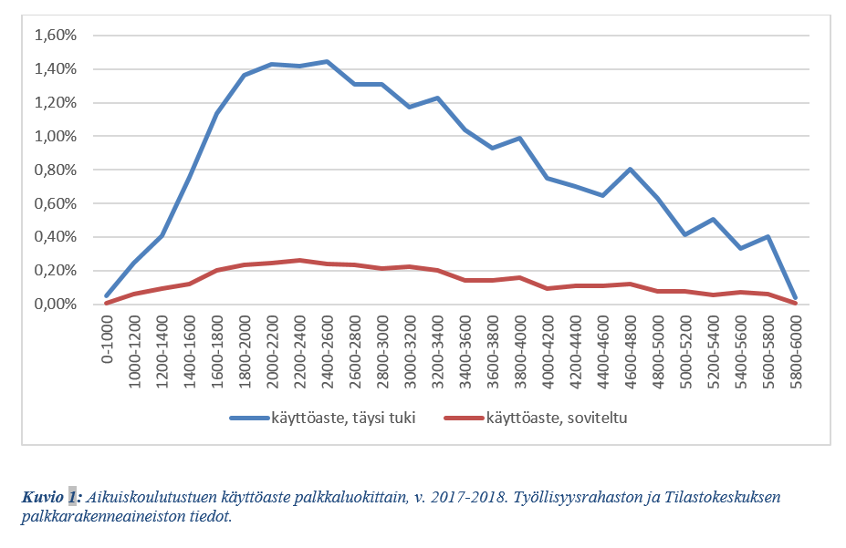 Pykälän 1 momentissa säädettäisiin henkilön tukikauden aikaisten tulojen vaikutuksesta maksettavaan aikuiskoulutustuen määrään. Tuen laskentakaavaa muutettaisiin siten, että se osuus tulosta, joka vähentää täyttä aikuiskoulutustukea, alennettaisiin nykyisestä 80 %:sta 50 %:iin. Samalla poistetaan 250 euron suojaosa eli se osa tulosta, jota ei huomioida aikuiskoulutustuen määrittelyssä.