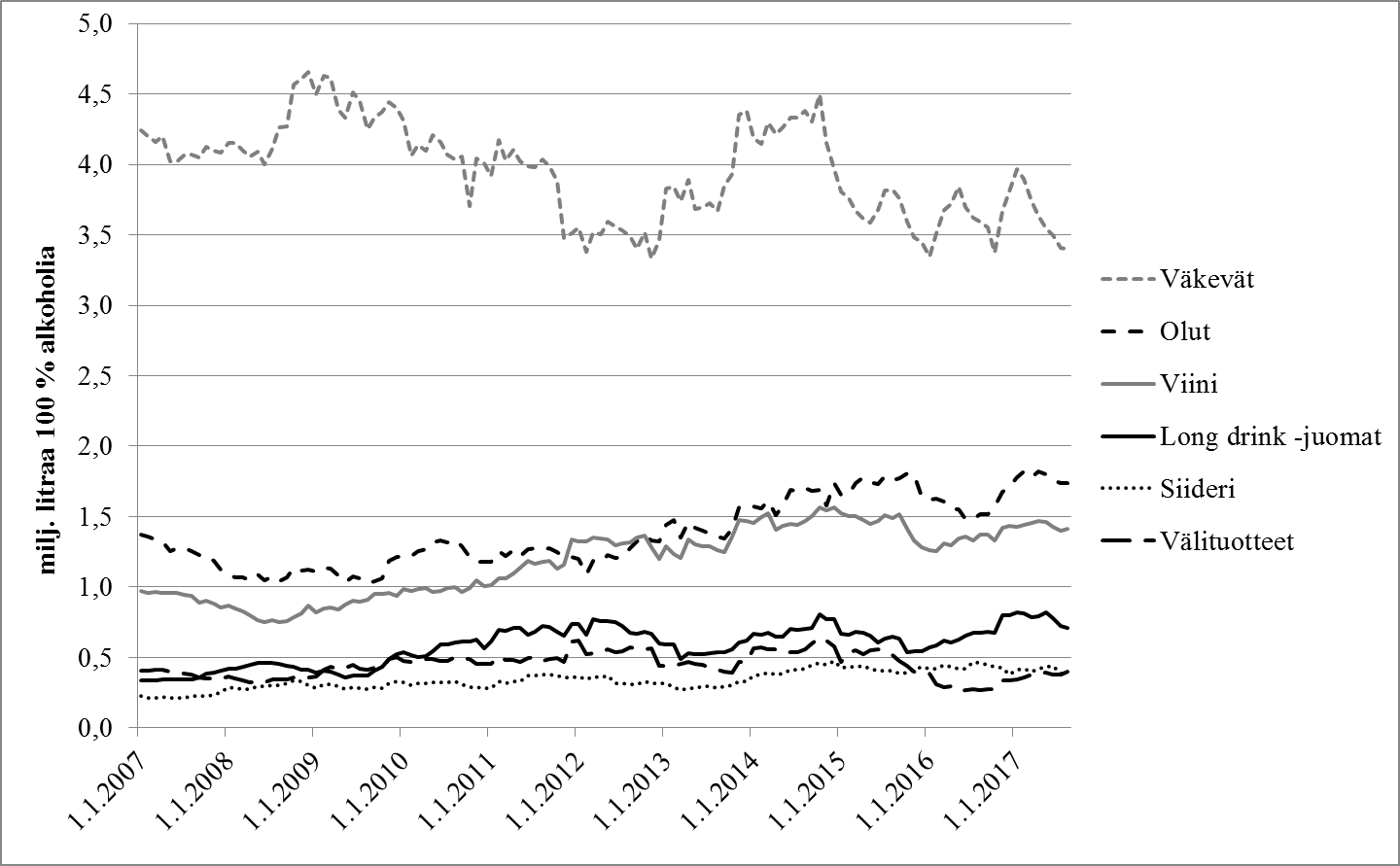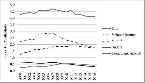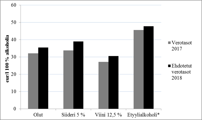 *Alkoholilain muutosten vaikutuksia alkoholipitoisuuteen tai hintoihin ei ole huomioitu
