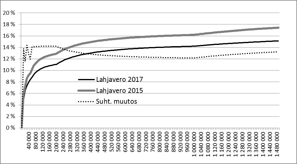 Lahjaveroa maksetaan II veroluokassa seuraavan asteikon mukaan: