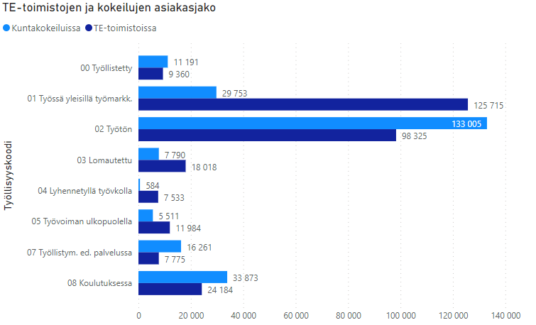 Työ- ja elinkeinoministeriön työnvälitystilastojen mukaan vuonna 2021 te-palvelut.fi -sivustolle ilmoitettiin avoimia työpaikkoja hieman yli miljoona. Avoinna olleisiin työpaikkoihin tehtiin noin 163 000 työtarjousta. Työpaikoista täytettiin noin 8 000 työtarjouksesta ja noin 28 000 työ- ja elinkeinotoimistojen tai työllisyyden edistämisen kuntakokeilujen asiakkaalla. Työpaikat olivat haussa keskimäärin 24 päivää.