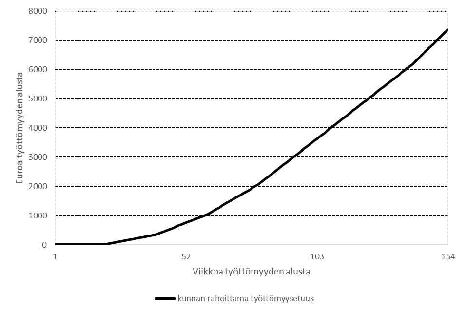 Kuntien lisääntyvä rahoitusvastuu työttömyysetuuksista kompensoitaisiin kunnille valtionosuusjärjestelmän kautta poikkileikkaushetken mukaisena. Kompensaation kuntakohtaista kohdentumista ei jälkikäteen tarkistettaisi, joten kunta, joka pystyisi lyhentämään työttömyysjaksoja ja ehkäisemään pitkäaikaistyöttömyyttä hyötyisi tästä taloudellisesti. Tämä muodostaisi kunnille kannusteen pyrkiä edistämään työllisyyttä mahdollisimman tehokkaasti. Uudistuksella tavoitellaan 7 000-10 000 henkilön työllisyysvaikutusta.