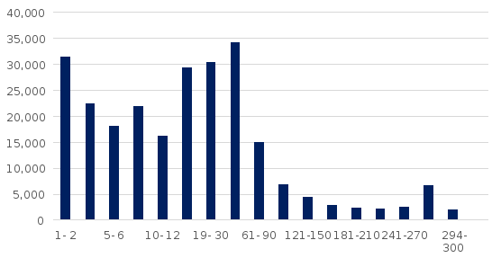 Arviossa on käytetty hyödyksi Kansaneläkelaitoksen (Kela) tilastoja sairauspoissaolojen määrästä. Niissä on huomioitu kaikki Kelalle ilmoitetut yli yhdeksän päivää kestäneet sairauspoissaolojaksot, jotka ovat alkaneet vuoden 2016 aikana. Arviossa lähdetään siitä, että lyhin mahdollinen sairausloman kesto, jossa säännösehdotuksella voi olla vaikutusta lomien määrään, olisi 82 työpäivää, eli noin 98 arkipäivää. Mainittu 82 työpäivää muodostuu siitä, että 75 päivään lisätään seitsemän päivää. Kuukaudessa voi vähimmillään olla 20 työpäivää, jolloin seitsemän sairauspäivää merkitsee sitä, ettei täyttä lomanmääräytymiskuukautta kerry. Kelan tilastointitapa huomioiden säännösehdotuksen vaikutukset alkaisivat siis käytännössä näkyä 91—120 päivää kestäneiden tai sitä pidempien sairausjaksojen ryhmissä (ks. oheinen kuvio). Merkittävin vaikutus loman ansaintaan näkyy kuitenkin vasta hyvin pitkien sairauslomien kohdalla.