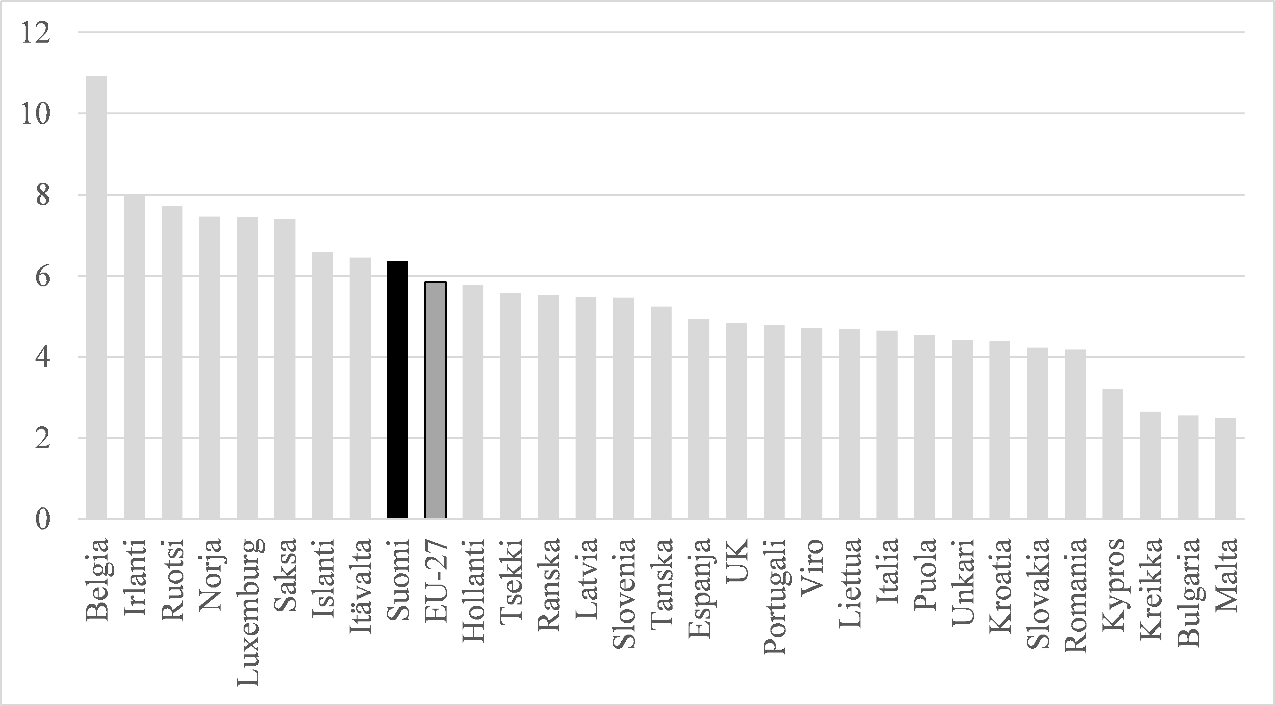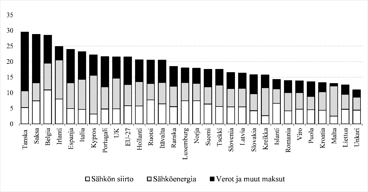 2.3.1  Kohtuullisen tuoton taso ja sähkönjakelun hintataso EU-maissa