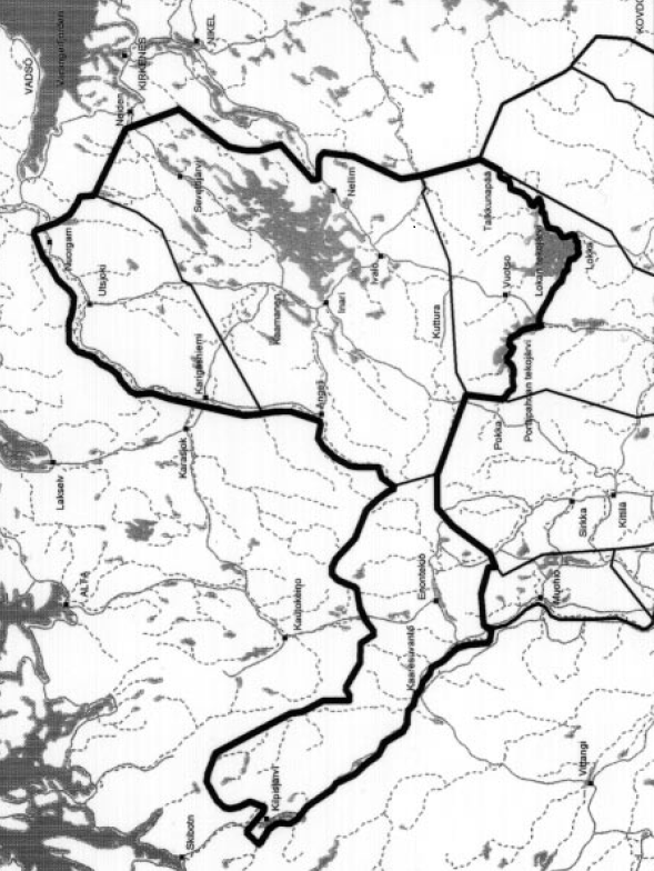 Liitteenä oleva kartta on sama, joka on sisältynyt saamelaiskäräjistä annettuun asetukseen (1727/1995). Mikäli joskus tulevaisuudessa kunta- tai paliskuntarajat muuttuisivat, kotiseutualueen rajojen on tarkoitus säilyä kartan mukaisina.