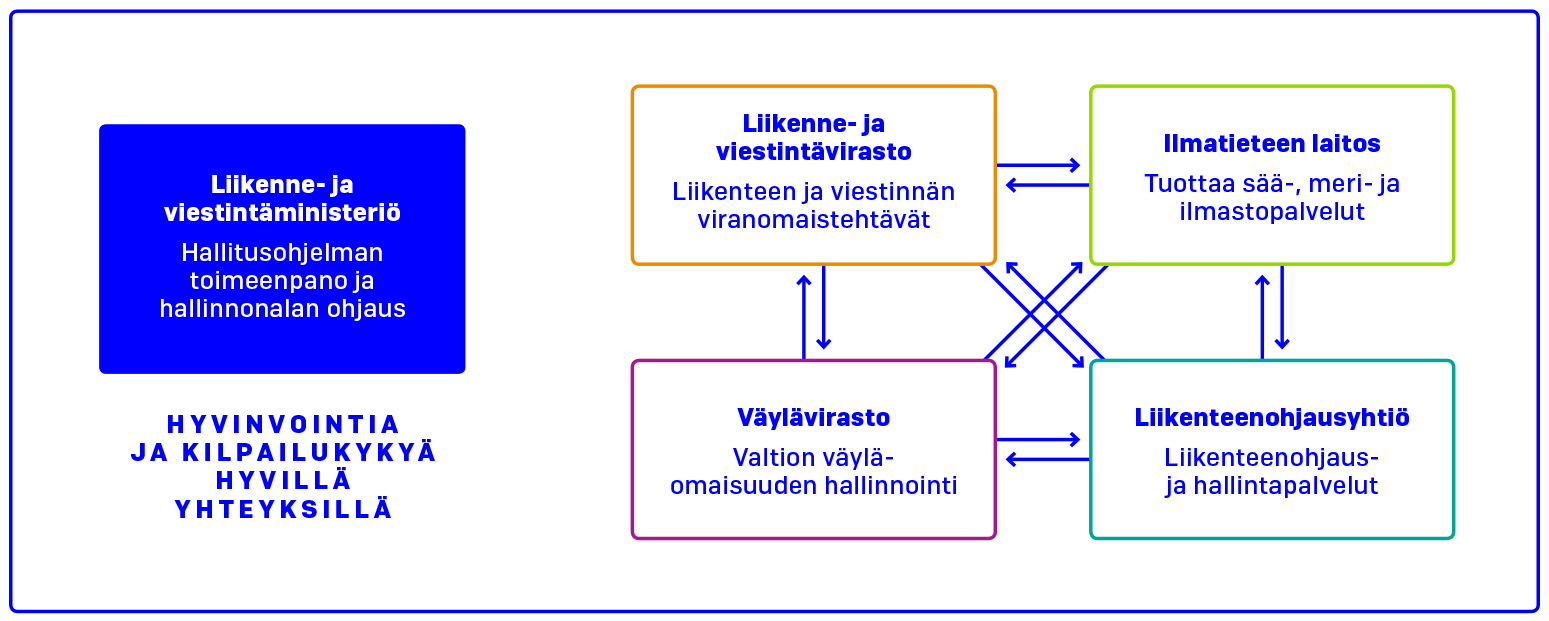Liikenteenohjausyhtiön toimialaan kuuluvat meri-, rautatie- ja tieliikenteenohjauspalvelut ja siihen liittyvät liikenteenhallinnan palvelut sekä niihin liittyvät tiedon kerääminen, hallinta ja hyödyntäminen. Yhtiön ensisijaisena tehtävänä on varmistaa liikenteen sujuvuus ja turvallisuus meriliikenteessä, rautatieliikenteessä ja tieliikenteessä. Tämä tapahtuu tarjoamalla liikenteenohjaukseen liittyviä palveluita. Yhtiön erityistehtävänä on vastata alusliikennepalvelujen, rautatieliikenteen ohjauspalvelujen ja tieliikenteen ohjauspalvelujen tarjoamisesta turvallisuus- ja väylänpitoviranomaisille siinä laajuudessa, kun se on näiden lakisääteisten virkatehtävien hoitamiseksi perusteltua. Yhtiön tehtävänä on myös kerätä ja avata tietoa, luoda mahdollisuuksia markkinoille syntyvälle uudelle liiketoiminnalle, joka perustuu automaatioon ja tiedon laajempaan hyödyntämiseen. Yhtiön toiminnan kautta pyritään edesauttamaan liikenteen digitalisaation ja automaation ympärille rakentuvien markkinoiden kehittymistä tavalla, joka palvelisi mahdollisimman kokonaisvaltaisesti Suomen elinkeinoelämän toimintaa, kuljetuksia ja kansalaisten liikkumista. Yhtiöllä voi olla toimintaa myös ulkomailla.