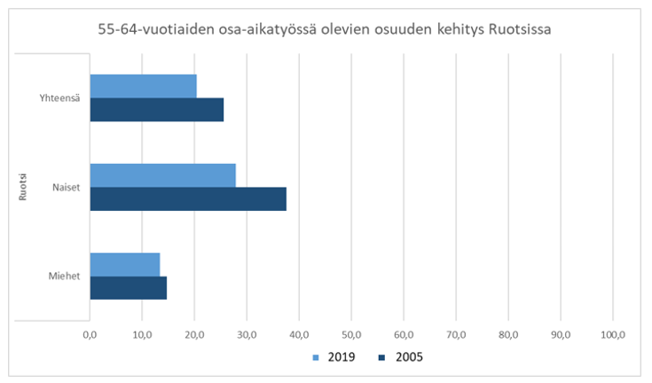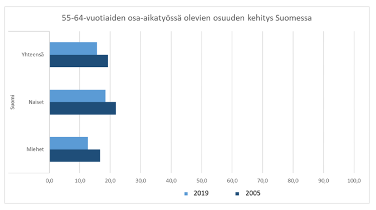 Momentissa säädettäisiin vielä siitä, että työntekijän pyynnöstä työnantajan olisi ensisijaisesti järjestettävä työt osa-aikatyön mahdollistavalla tavalla myös silloin, kun 55 vuotta täyttänyt, työnantajan palveluksessa vähintään kolme vuotta ollut työntekijä haluaa lyhentää säännöllistä työaikaansa. Säännöksen noudattamisen edellytyksenä olisi ainoastaan työntekijän vähintään 55 vuoden ikä ja kolmen vuoden työhistoriavaatimus kyseisen työnantajan palveluksessa. Osa-aikatyön tekemistä koskevan pyynnön taustalla ei edellytetä olevan työntekijän esittämiä terveydellisiä tai sosiaalisia syitä eikä muitakaan perusteita. Ehdotetun säännöksen taustalla on kuitenkin ikääntyneen työntekijän työssä jaksamisen ja työhyvinvoinnin tukeminen. Yleisenä tavoitteena on pidentää työntekijöiden työuria.