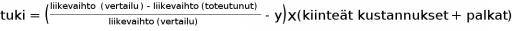 2 momentti. Yritysten kustannustuen määrä ennen 3 momentissa tehtäviä vähennyksiä laske-taan seuraavalla kaavalla (liikevaihto on kyseisen ajankohdan keskimääräinen liikevaihto):