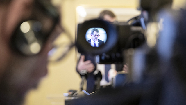 Rundradion har fem kameror i plenisalen. Om du behöver få ljud- och bildsignal från plenisalen, kontakta Riksdagskommunikationens jourtelefon 050 381 9492.