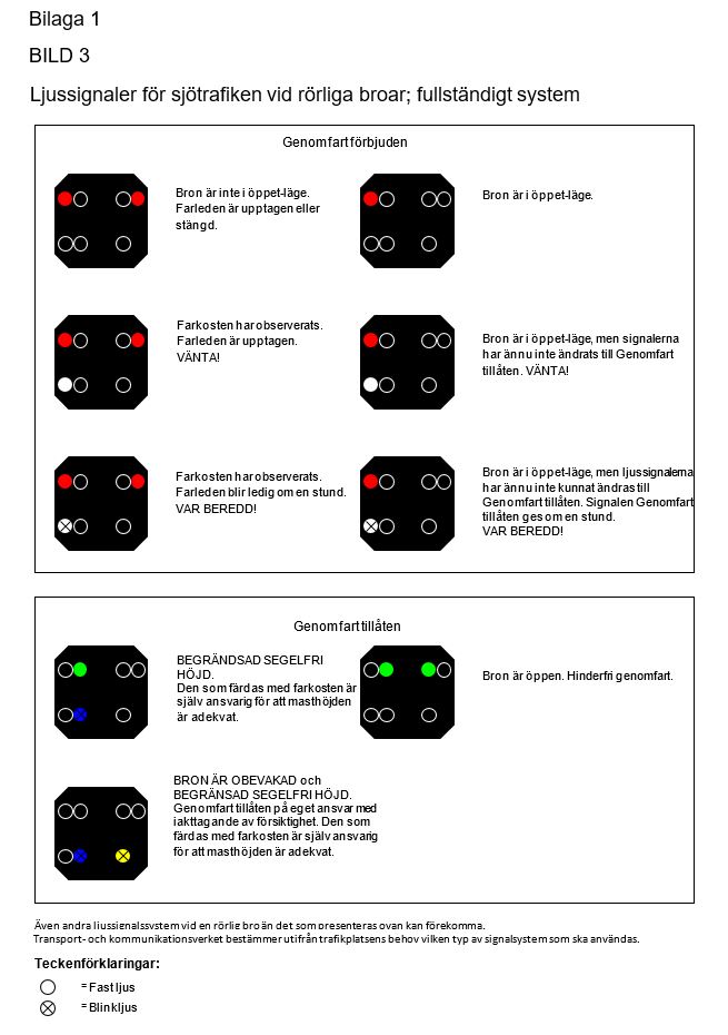 7) de i 33 § avsedda förfaranden som ska iakttas i kanaler och i trafik via rörliga broar, eller