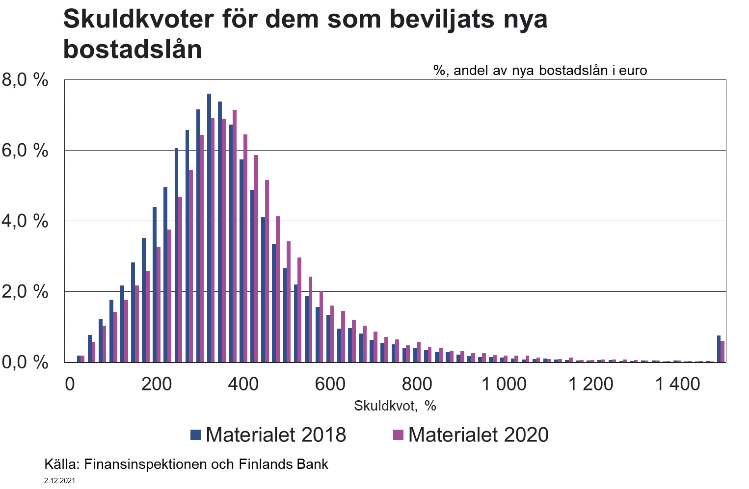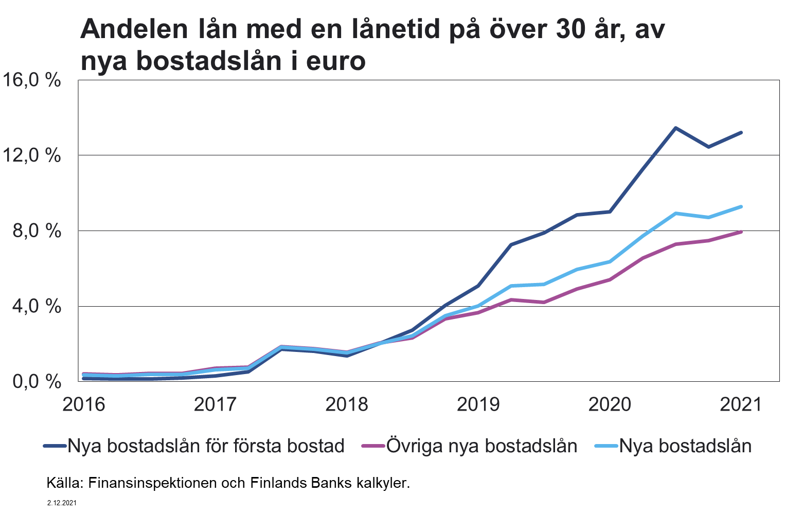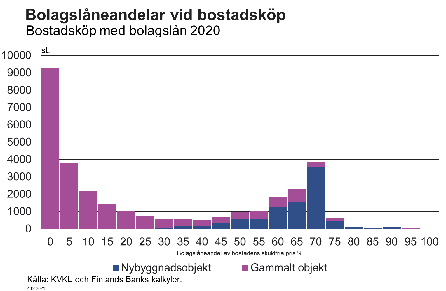 I föreslagna 2 mom. fastställs den maximala belåningsgraden. Enligt förslaget får kreditbeloppet då krediten beviljas inte överstiga 90 procent av det verkliga värdet av säkerheterna. Ett undantag görs för den maximala belåningsgraden i fråga om krediter som lyfts för förvärv av den första bostaden, där kreditbeloppet enligt förslaget får uppgå till högst 95 procent av det verkliga värdet av säkerheterna. Personborgen beaktas inte som säkerhet enligt detta moment.
