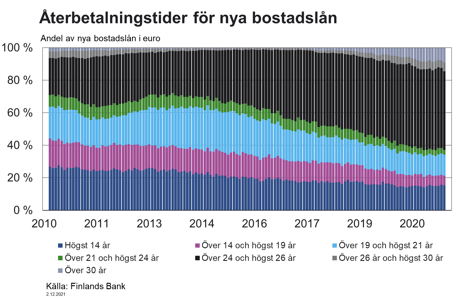 Föreslagna 3 mom. innehåller bestämmelser om en maximal återbetalningstid för krediter till bostadssammanslutningar. I momentet förbjuds sådana villkor i kreditavtal med stöd av vilka återbetalningstiden för krediten blir längre än 30 år. Den maximala återbetalningstiden föreslås börja löpa antingen den dag krediten lyfts eller från den sista raten som lyfts. Enligt förslaget får kreditgivaren dock under varje kvartal avvika från den maximala återbetalningstiden i 10 procent av kreditavtalen. Procentandelen räknas ut på det totala beloppet av utlåningen i euro under kvartalet i fråga. I fråga om medlemskreditinstitut enligt lagen om en sammanslutning av inlåningsbanker (599/2010) räknas procentandelen ut på sammanslutningsnivå, inte på kreditinstitutsnivå.