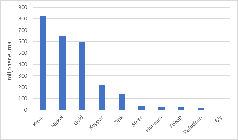 Figur 2. Det kalkylmässiga värdet av den inhemska gruvproduktionen av metaller i Finland år 2024