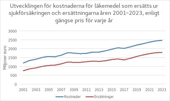 Vid regeringens ramförhandlingar den 16 april 2024 har regeringen fattat beslut som ska förbättra hållbarheten i de offentliga finanserna och skapa förutsättningar för att stoppa skuldsättningen. Målet är att förbättra hållbarheten i de offentliga finanserna också med läkemedelsbesparingar (Planen för de offentliga finanserna åren 2025–2028; Finansministeriets publikationer 2024:29). Vid ramförhandlingarna beslutades att ovan nämnda ersättande besparingar på 35 miljoner euro i statsandelen för sjukvårdsförsäkringen genomförs med sparåtgärder som riktas på läkemedel. Vid ramförhandlingarna beslutades därtill att initialsjälvrisken för läkemedelsersättningar höjs från och med början av år 2025 till 70 euro och binds till folkpensionsindex. Med denna sparåtgärd eftersträvas besparingar på 22–25 miljoner euro. Därtill beslutades att sträva efter besparingar på 30 miljoner euro i systemet för läkemedelsersättning bland annat via referensprissystemet. Vid ramförhandlingarna gavs också ett beslut om att sträva efter ytterligare besparingar på 10 miljoner euro i systemet från och med år 2027.