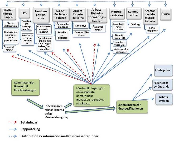 De uppgifter som stora arbetsgivare och arbetsgivare med verksamhet i flera branscher ska lämna om utbetalda löner kan vara mycket omfattande, medan uppgifterna för mindre arbetsgivare normalt sett är relativt begränsade. Exemplen nedan beskriver det senare fallet.