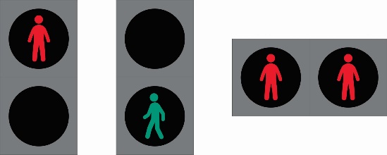 Bilaga 2. Trafikljussignaler. Till trafikljussignalen 1 (Fast rött ljus) fogas två bilder.