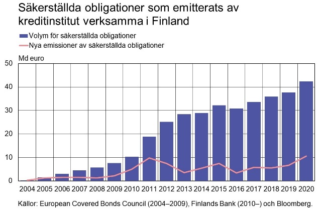 En stor andel av de finländska bankernas marknadsfinansiering består av långfristiga säkerställda obligationer. Volymen för de säkerställda obligationer som kreditinstitut verksamma i Finland emitterar har ökat snabbt sedan mitten av 2000-talet. Under översynen av den gällande lagen om hypoteksbanker år 2010 var stocken av säkerställda obligationer cirka 10 miljarder euro, medan den i oktober 2020 stigit till cirka 50 miljarder euro. Av balansomslutningen för hela Finlands banksektor (cirka 750 miljarder euro i slutet av andra kvartalet 2020) var de säkerställda obligationernas andel cirka sju procent.