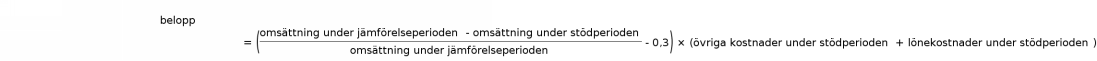 Ett villkor för kostnadsstödet är att den månatliga omsättningen i genomsnitt under stödperioden för det företag som ansöker om stöd är 30 procent mindre än den månatliga omsättningen i genomsnitt under jämförelseperioden. Kostnadsstöd betalas inte i en situation där stödets kalkylerade belopp är mindre än 2 000 euro i månaden.