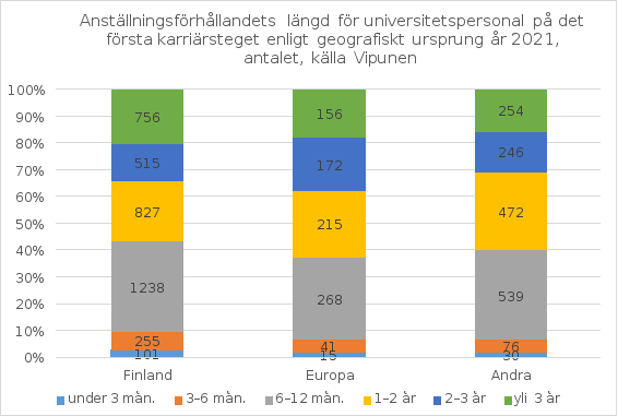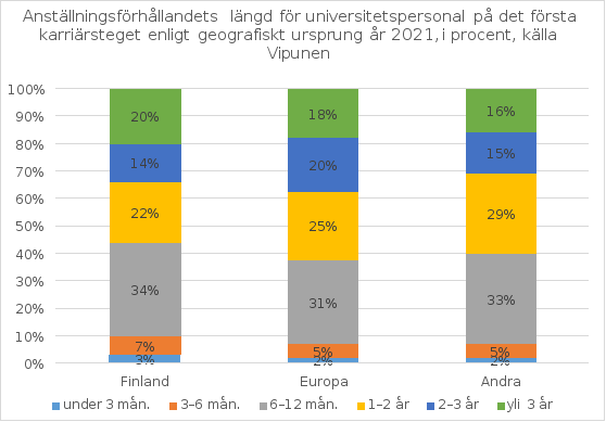 Forskare på det första karriärsteget har vanligtvis korta anställningsförhållanden. Med första karriärsteget avses forskare som avlägger doktorsexamen.