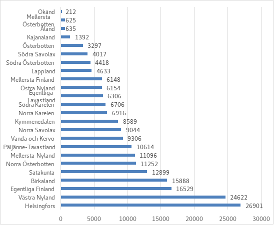 Av figur 3 framgår antalet allmänläkare och specialister i allmänmedicin enligt landskap. I uppgifterna från Folkpensionsanstalten har antalet sådana läkare beaktats för vars mottagningar det betalades FPA-ersättning 2024. Sett till antalet finns det flest sådana läkare i huvudstadsregionen och Birkaland.