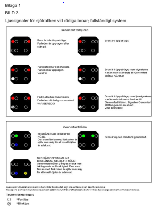 2.1  Förfaranden som ska iakttas i trafik längs kanaler och via rörliga broar