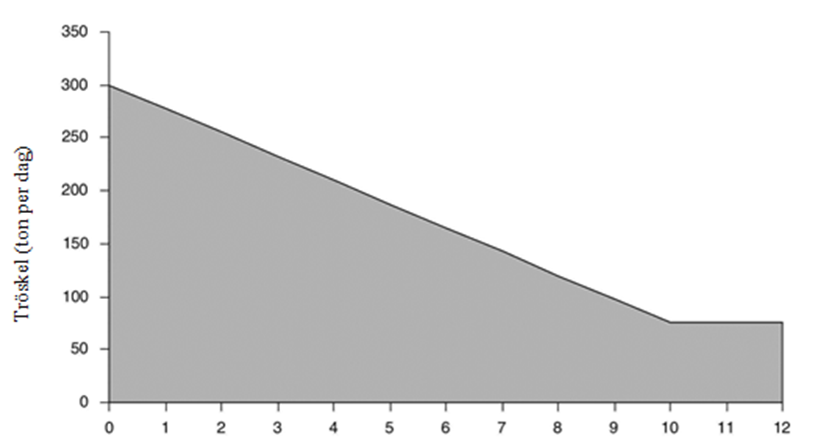 När den enda avfallshantering som bedrivs är anaerob biologisk nedbrytning, ska tröskelvärdet för kapacitet för denna verksamhet vara 100 ton per dygn