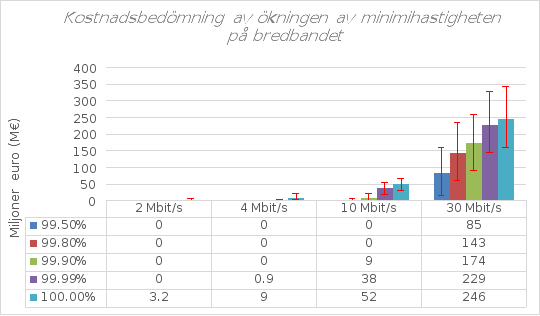 I konsekvensbedömningen bedömdes också den nytta och de kostnader som de rekommenderade alternativen medför. Även om det för vissa områden inte var möjligt att kvantifiera konsekvenserna, förutspåddes att om alla rekommenderade alternativ genomförs samtidigt kommer investeringarna, konsumtionen och arbetsproduktiviteten att öka. Alternativen i fråga medför även institutionella kostnader eftersom Berec behöver ytterligare medel för att kunna utföra sina utökade arbetsuppgifter och de nationella regleringsmyndigheterna behöver ytterligare medel för att kunna bidra till Berecs verksamhet. Enligt bedömningen kommer en mer enhetlig tilldelning av spektrum (införande av 5G) att generera vinster på totalt 146,5 miljarder euro om året. Dessa kommer till största delen att fördelas på bilindustrin, hälso- och sjukvården, transportsektorn och de allmännyttiga företagen.