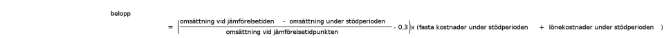 Enligt förslaget ska stödet betalas ut till företag vars omsättning har sjunkit med minst 30 procent jämfört med en jämförelseperiod i fjol, men endast inom de sektorer där omsättningen totalt har minskat med 10 procent eller mer. Ett företag eller någon annan sammanslutning som bedriver affärsverksamhet ska få ersättning för en andel av sina fasta kostnader. Ju mer omsättningen har minskat, desto större del av kostnaderna ersätts, dock högst 70 procent. Propositionen baserar sig i stor utsträckning på ett förslag från den finanspolitiska strategiarbetsgruppen ledd av Vesa Vihriälä.
