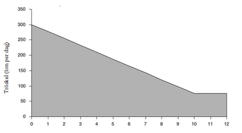 Framställning av livsmedel eller foder med beredning och behandling, utom ren paketering, av följande råvaror, oavsett om de är tidigare behandlade eller obehandlade: d) Animaliska och vegetabiliska råvaror, både i kombinerade och separata produkter, där produktionskapaciteten för färdiga produkter i ton per dygn överstiger 75 om A är minst 10, eller 300 - (22,5 A), om A är mindre än 10 där A är andelen animaliskt material (i viktprocent) av produktionskapaciteten för färdiga produkter. Förpackningen ska inte inkluderas i produktens slutliga vikt. Denna punkt ska inte tillämpas då råvaran är endast mjölk. En bild som hänför sig till punkten finns efter tabellen1. | | d1) Anläggningar som tillverkar margarin eller andra vegetabiliska eller animaliska fetter eller oljor med en produktionskapacitet för färdiga produkter som är minst 15, men högst 75 ton per dygn, om andelen animaliskt material av produktionskapaciteten för de färdiga produkterna är minst 10 viktprocent; i andra fall högst 300 - (22,5 x A) ton per dygn, där A är andelen animaliskt material (i viktprocent) av de färdiga produkterna d2) Andra än i 4 i-punkten i bilaga 4 avsedda anmälningspliktiga industriella anläggningar som tillverkar eller blandar foder eller foderprotein med en produktionskapacitet för färdiga produkter som är minst 15, men högst 75 ton per dygn, om andelen animaliskt material av produktionskapaciteten för de färdiga produkterna är minst 10 viktprocent; i andra fall högst 300 - (22,5 x A) ton per dygn, där A är andelen animaliskt material (i viktprocent) av de färdiga produkterna d3) Andra än i 4 j-punkten i bilaga 4 avsedda anmälningspliktiga glassfabriker eller ostmejerier, där produktionskapaciteten för färdiga produkter är minst 1 000, men högst 75 ton per dygn, om andelen animaliskt material av produktionskapaciteten för de färdiga produkterna är minst 10 viktprocent; i andra fall högst 300 - (22,5 x A) ton per dygn, där A är andelen animaliskt material (i viktprocent) av de färdiga produkterna d4) Andra än i 4 k-punkten i bilaga 4 avsedda anmälningspliktiga anläggningar som tillverkar färdigmat med en produktionskapacitet för färdiga produkter som är minst 5 000, men högst 75 ton per dygn, om andelen animaliskt material av produktionskapaciteten för de färdiga produkterna är minst 10 viktprocent; i andra fall högst 300 - (22,5 x A) ton per dygn, där A är andelen animaliskt material (i viktprocent) av de färdiga produkterna |