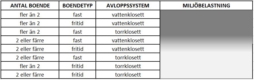 – Som regel bör avvikelse inte medges om det bor flera personer på fastigheten, om där finns torrklosett, men tryckvatten och personerna är fast bosatta. Då kan man utgå från att det uppkommer mycket gråvatten (dusch, diskmaskin, tvättmaskin). Belastningen på vattendrag kan vara något annat än obetydlig eftersom ungefär 60 procent av organiska ämnen kan finnas någon annanstans än i avfall från torrklosetter.