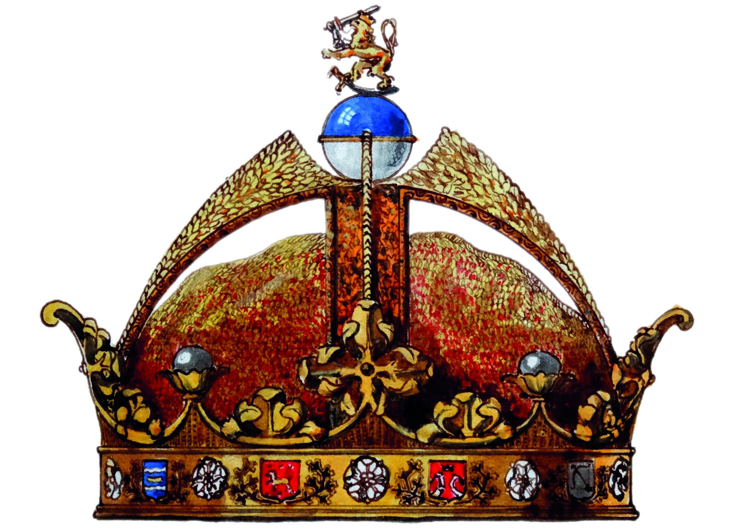 Konstnär Eric O. W. Ehrströms förslag till Finlands kungakrona under tvisten om statsskicket 1918.