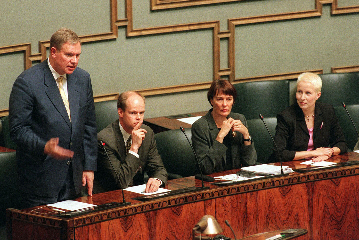 Regeringen under statsminister Paavo Lipponens ledning tillsatte en arbetsgrupp för att dryfta en totalreform av grundlagen. Fotot är från riksdagens frågestund den 28 september 2000.